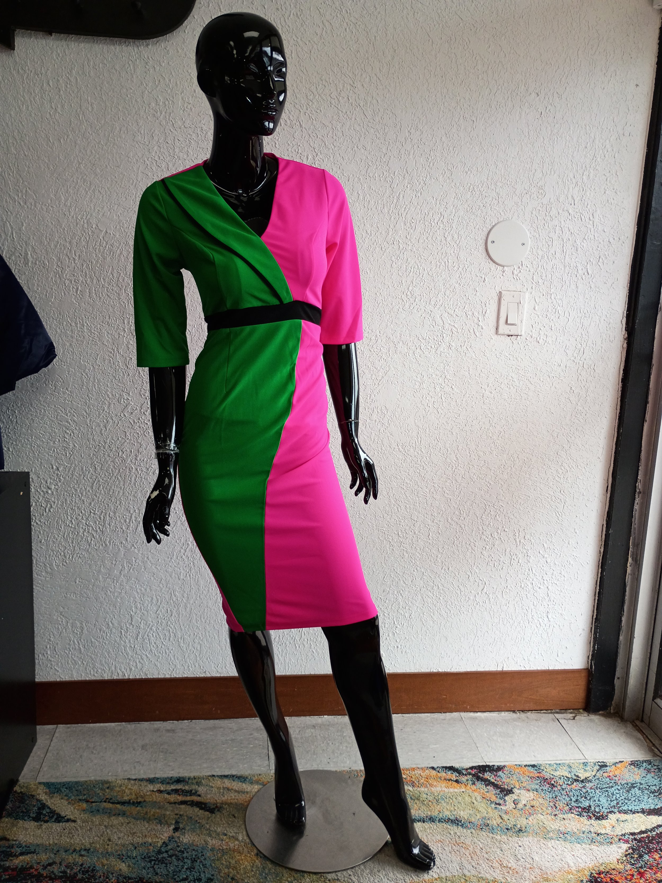 Image 1 of 2 Image 2 of 2 Pink/Green Dress $69.00 Size: Select Size Small Medium Larger Xlarge 2x 3x 1x Color: Select Color Multi Quantity: Add To Cart Added!