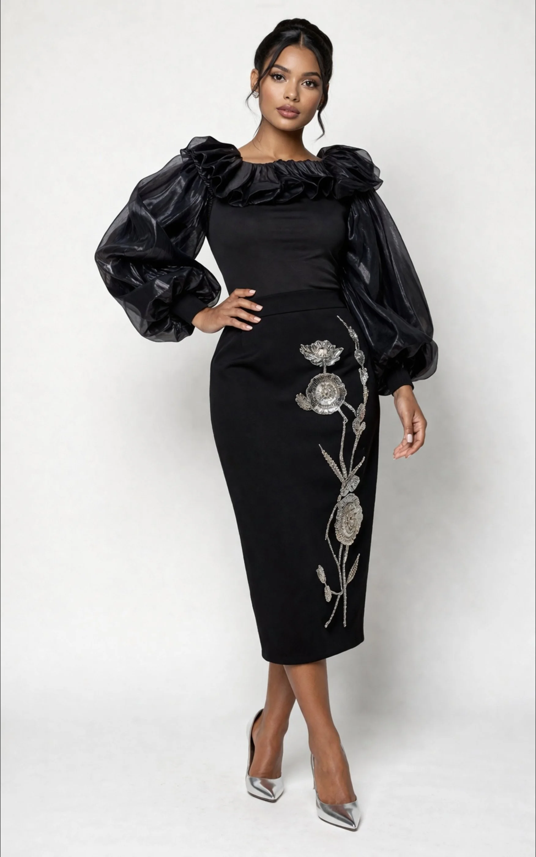 Image 1 of 2 Image 2 of 2 Detailed Skirt $105.00 Size: Select Size XLarge 1x 2x Color: Select Color Black Add To Cart Added!